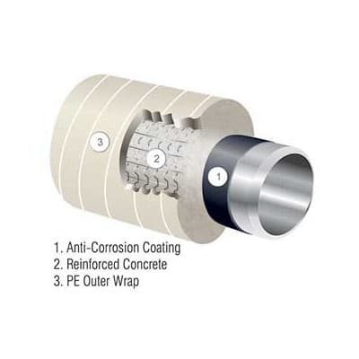 تم تصميم الخرسانة لحماية خطوط الأنابيب التي تمر تحت البحر أو البيئات الرطبة. هذا الطلاء بالإضافة إلى الحماية الميكانيكية للأنبوب ، ب