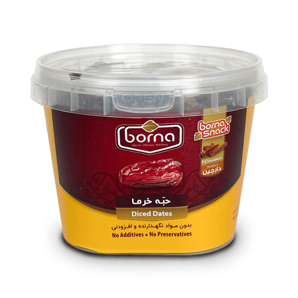*خواص حبه خرما با دارچین:** ترکیبی خوشطعم از خرمای طبیعی و پودر دارچین سرشار از ویتامینهای B و C، آهن، پتاسیم و فیبر تقویتکننده سیستم ایم