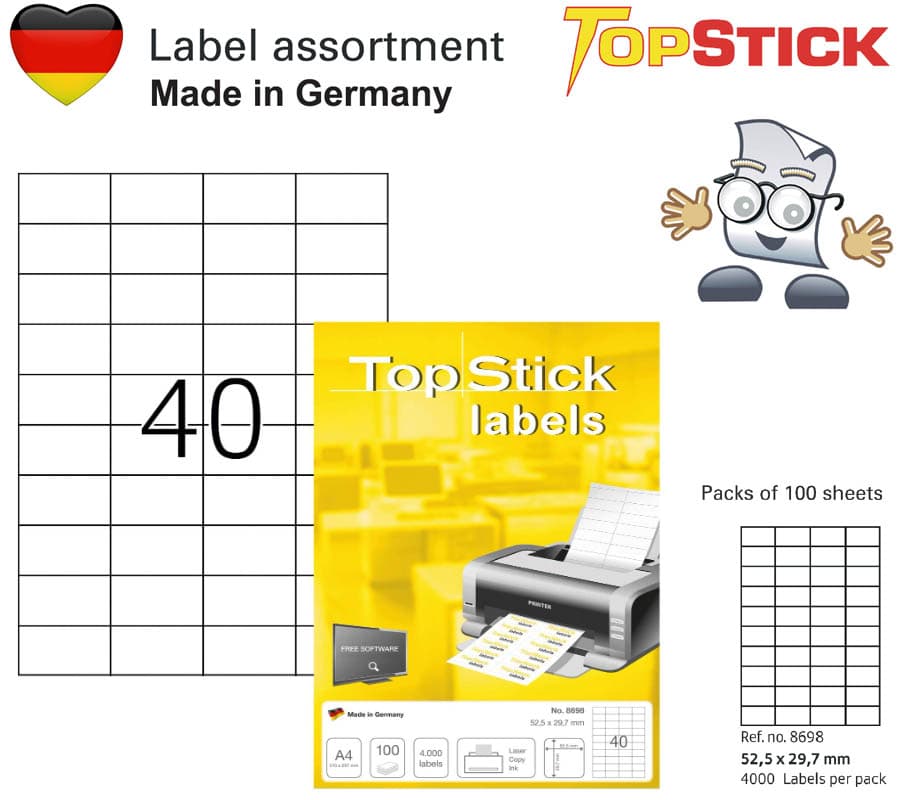 لیبل هرما تاپ استیک / پیش دایکات مخصوص ماشین چاپ دیجیتال ## A4 / 100 sheets per Pack / 1600 Labls per pack / 105.0x37.0mm