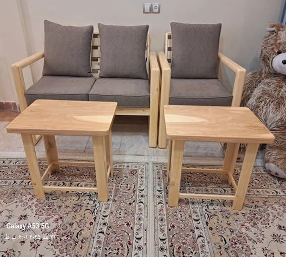 *خلاصه ویژگیها** **جنس مبلها:** چوب روسی درجه یک **جنس صفحه میز:** از صفحات بسیار با کیفیت و سبک Ply Wood